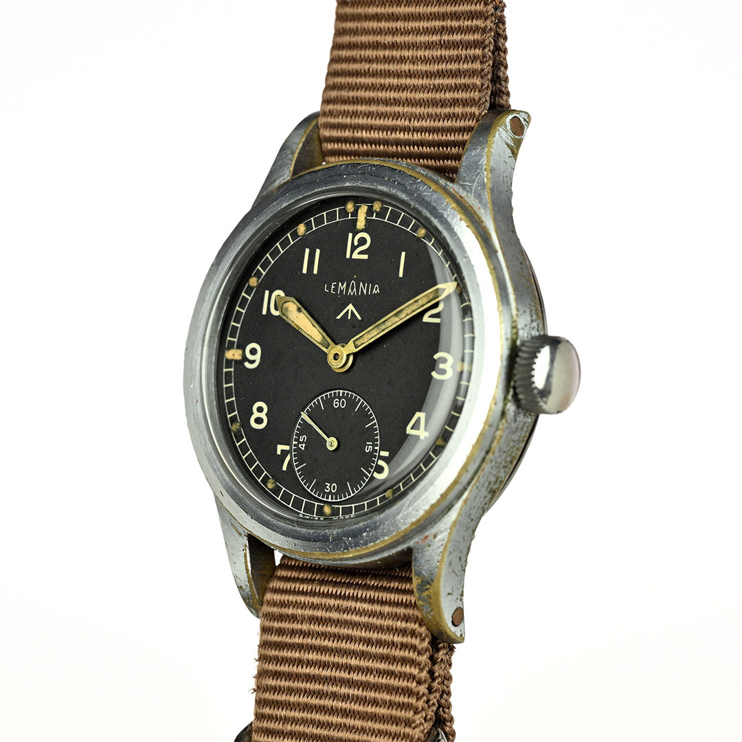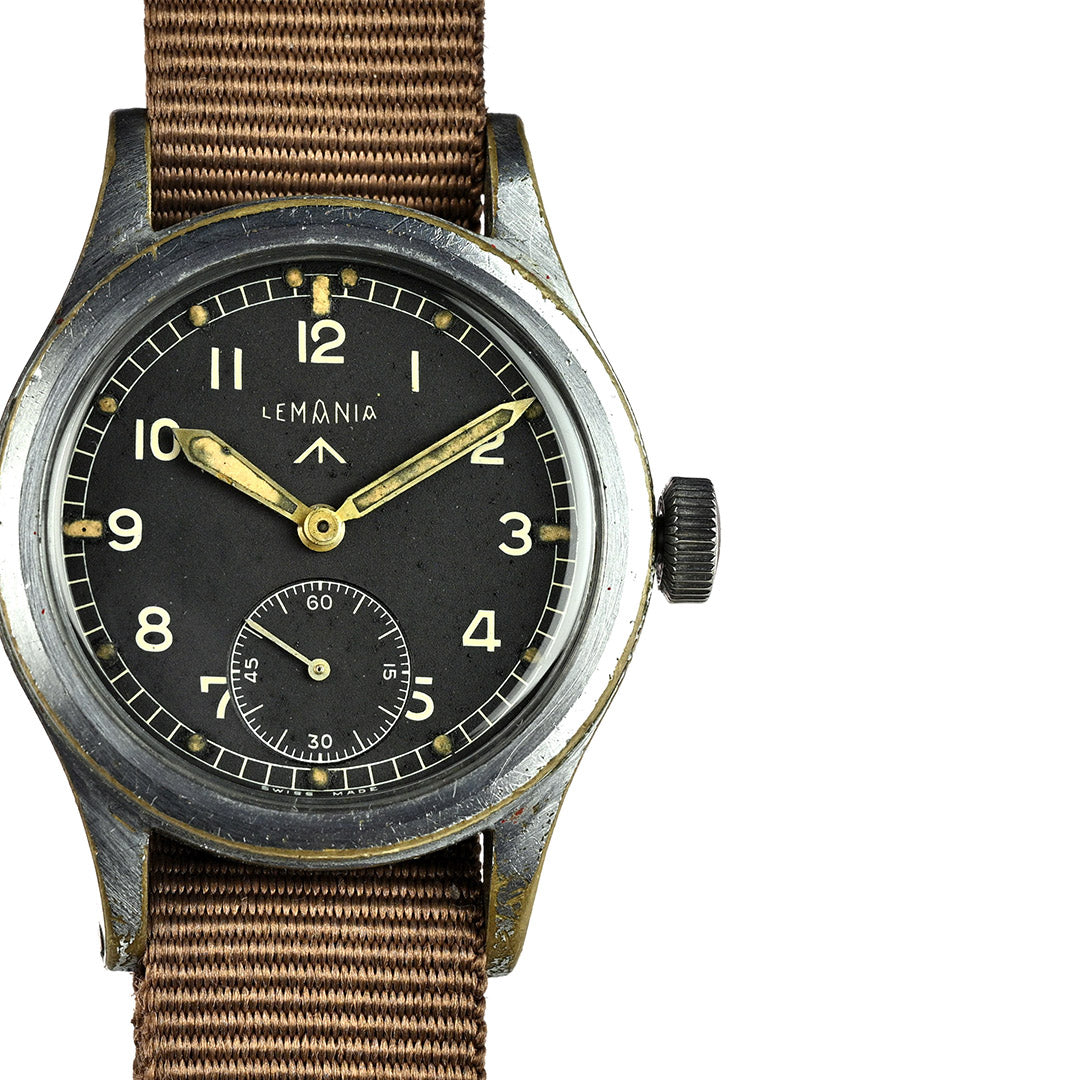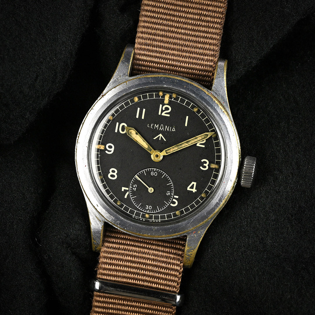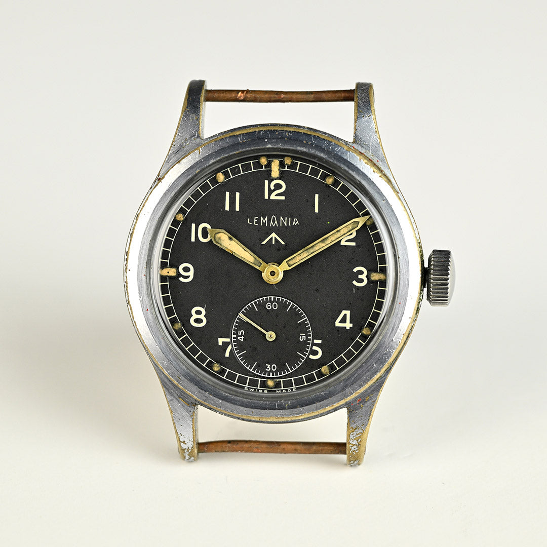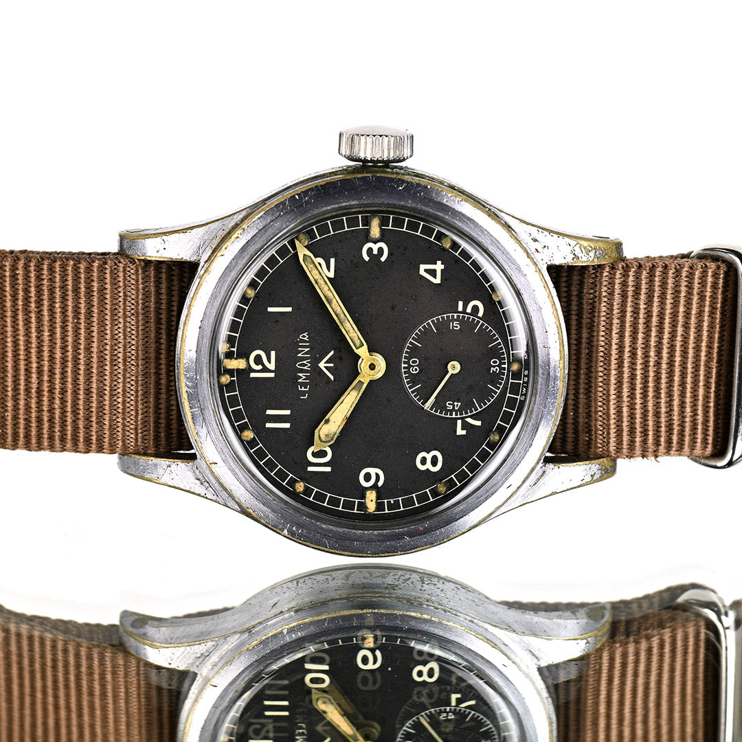 Lemania is one of Switzerland’s most respected movement makers, founded in 1884 and renowned for precision chronographs and military timepieces. During the Second World War, Lemania was one of the twelve manufacturers selected by the British Ministry of Defence to produce the now-famous “Dirty Dozen” watches for military use. Built to strict specifications, these watches prioritised durability, legibility and reliability in the field, cementing Lemania’s place in British military watch history.