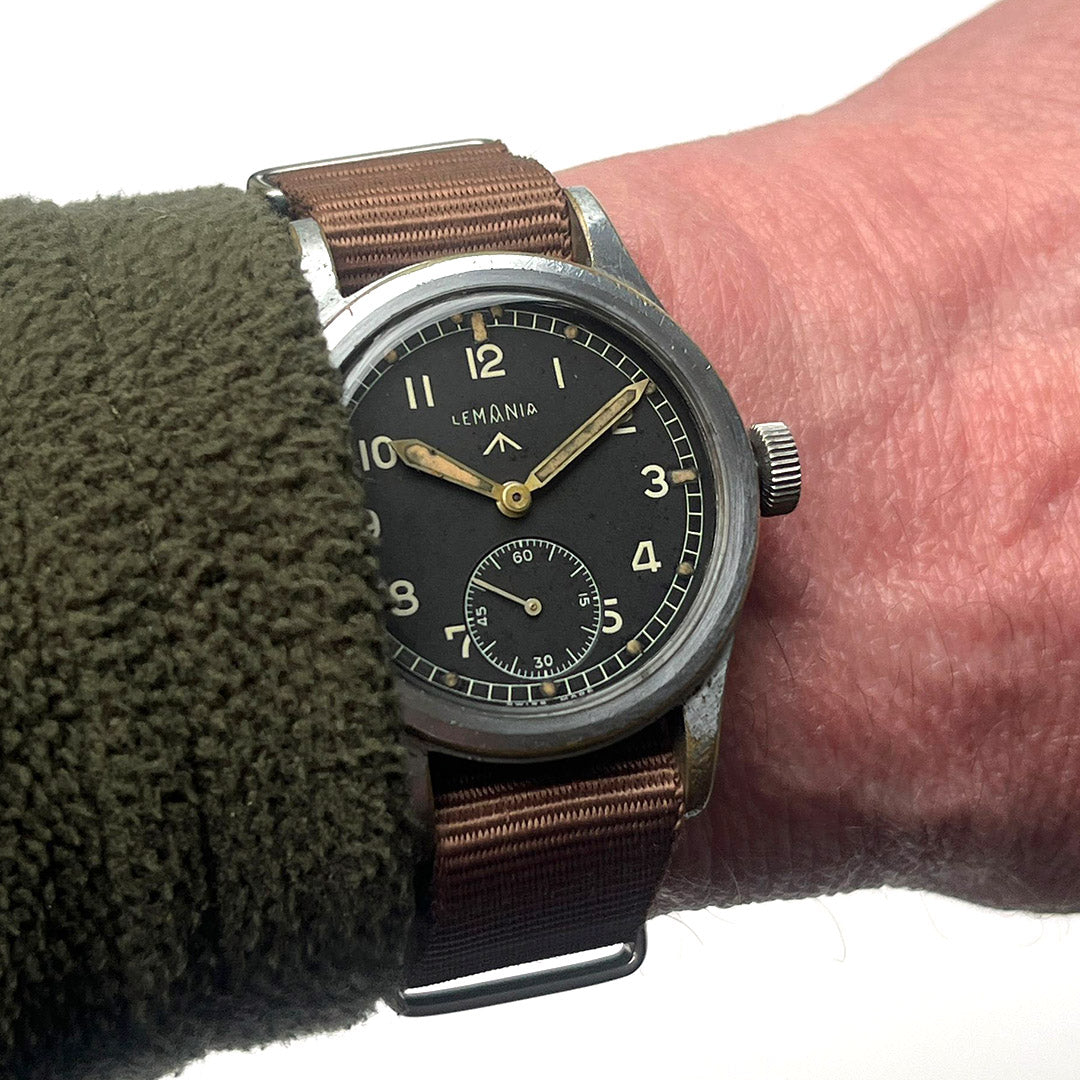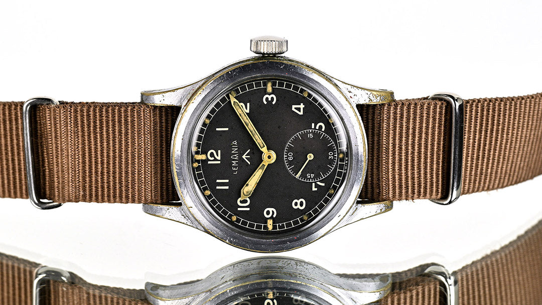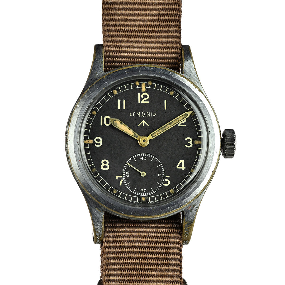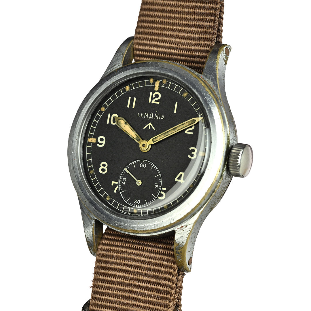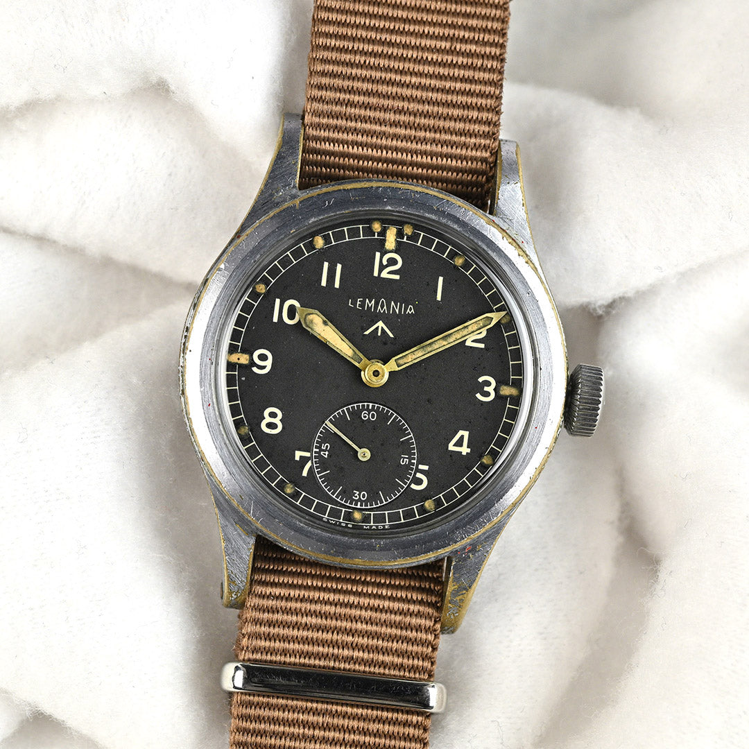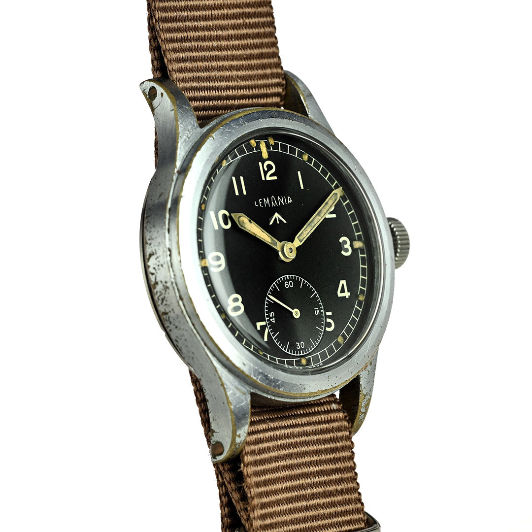 Lemania is one of Switzerland’s most respected movement makers, founded in 1884 and renowned for precision chronographs and military timepieces. During the Second World War, Lemania was one of the twelve manufacturers selected by the British Ministry of Defence to produce the now-famous “Dirty Dozen” watches for military use. Built to strict specifications, these watches prioritised durability, legibility and reliability in the field, cementing Lemania’s place in British military watch history.